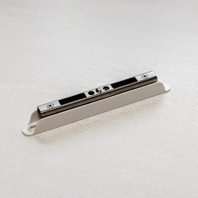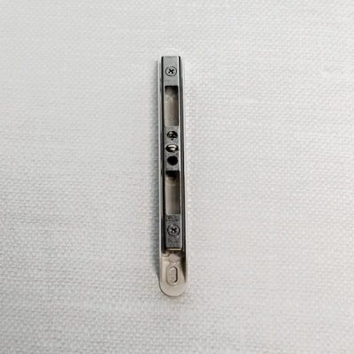 The Patio Door Strike is installed in the frame jamb of the patio door and allows the door to be locked. When the operable panel is closed, the door can be securely locked when the patio door double-point mortise lock engages with the patio door strike.